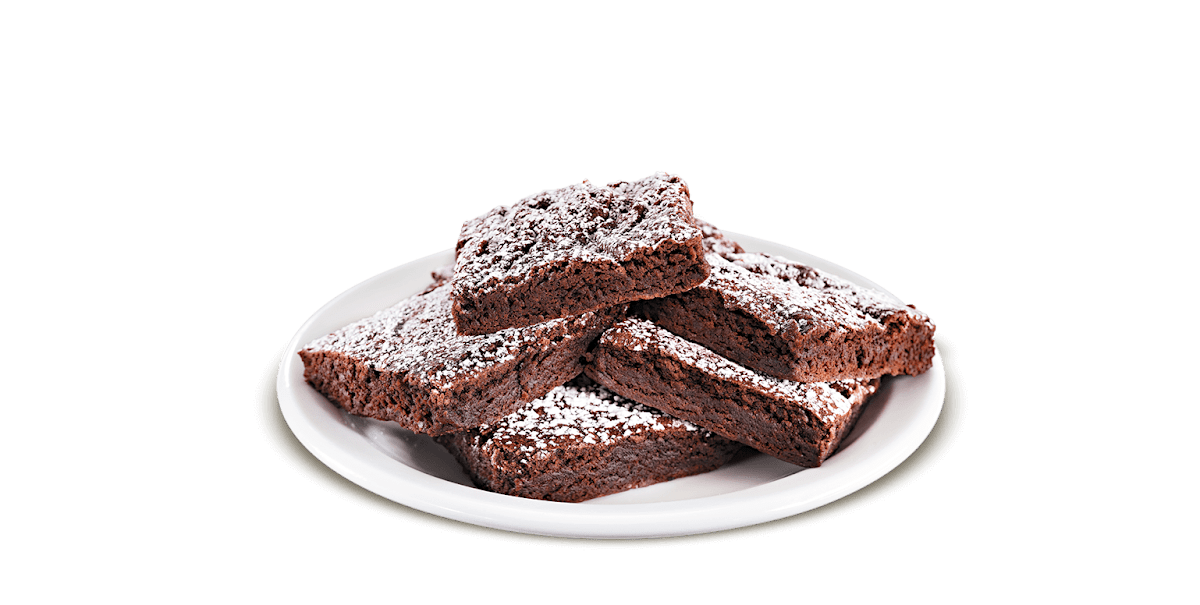 Rich, fudgy chocolate brownies dusted with powdered sugar.